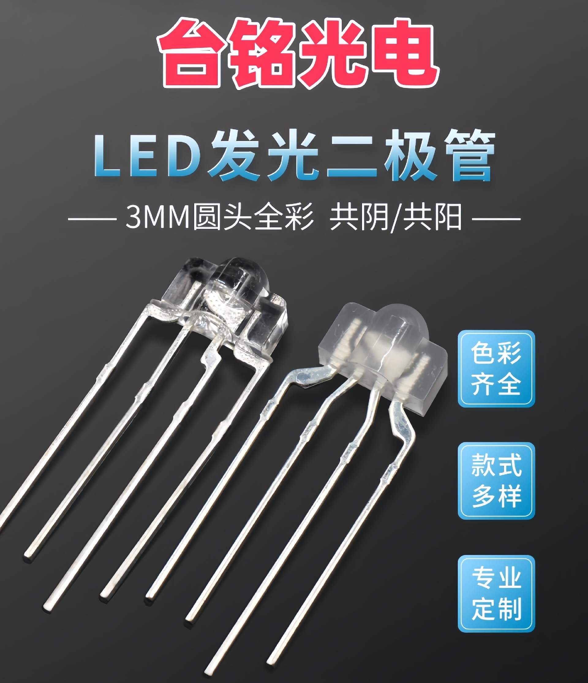 引脚数:4针(1公共极+3颜色通道,共阴/共阳可选)。