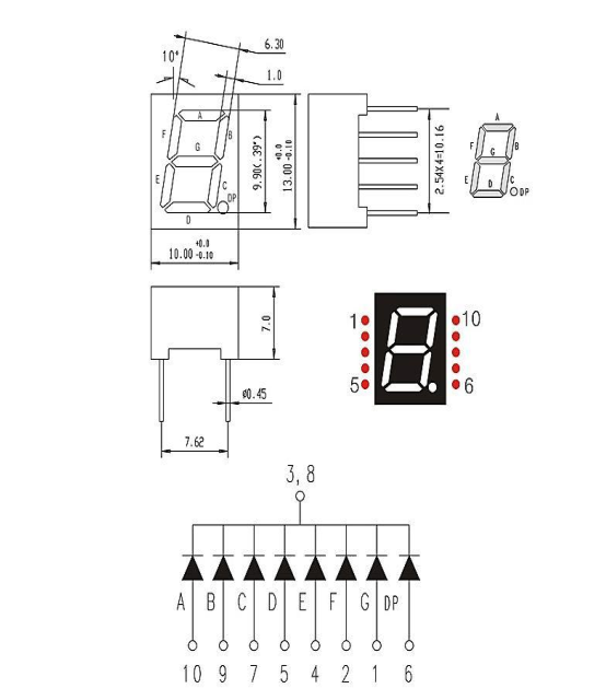 8段一位数码管0.39英寸 共阳红光 LED 数显数码管 一位数码管