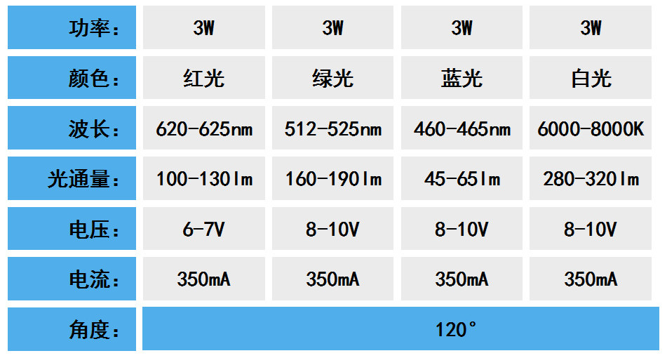 适用范围:舞台灯光,汽车照明,景观照明等广泛用途