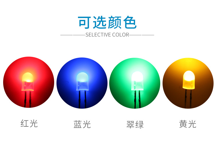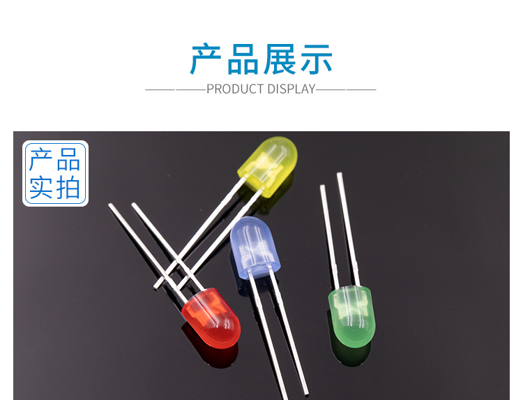 • 确认参数:电压、波长、亮度(mcd)、视角(如120°)、引脚类型(直插/贴片)。