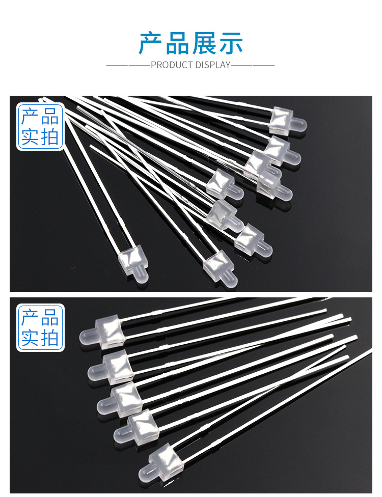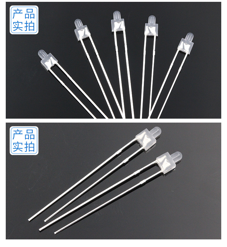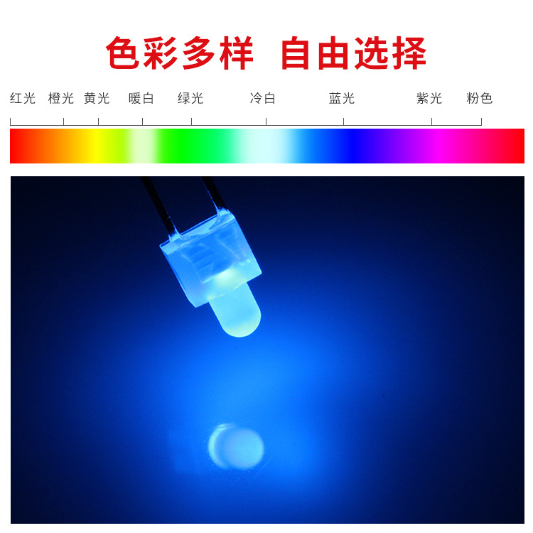 F2/2MM奶嘴雾状长脚发光二极管白光蓝光直插led灯珠