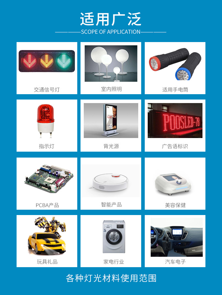 迷你车灯、飞机航模指示灯。