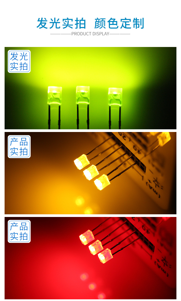 im电竞光电2×3×4mm 方形带色短脚直插LED灯珠(红发红、绿发绿、蓝发蓝) 是一种 高色彩纯度、短引脚DIP LED,