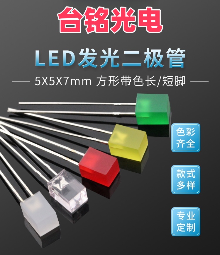 im电竞光电5×5×7mm 方形直插LED灯珠(长脚或短脚,红、蓝、黄、绿高亮)是一种 中功率DIP LED